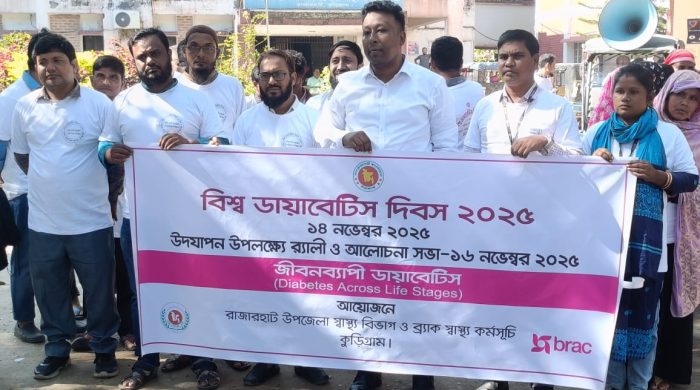“জীবন ব্যাপী ডায়াবেটিস” এই শ্লোগানে কুড়িগ্রামে বিশ্ব ডায়াবেটিস দিবস উদযাপন উপলক্ষে র্যালি ও আলোচনা সভা অনুষ্ঠিত হয়েছে।
