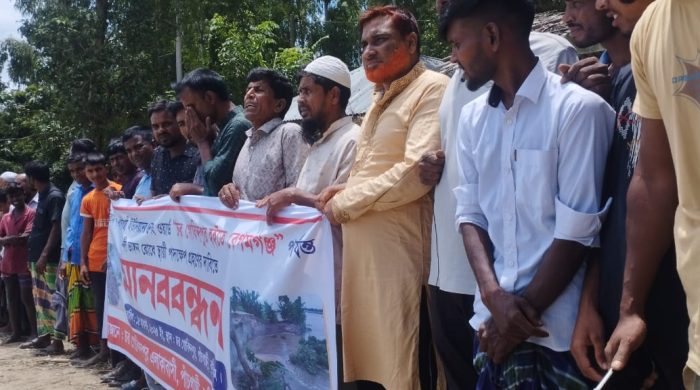 শুক্রবার (১৫ আগস্ট) দুপুরে চর গোবিন্দপুরে দুধকুমার নদের ভাঙন কবলিত এলাকায় ঘন্টাব্যাপী এ মানববন্ধন কর্মসূচি অনুষ্ঠিত হয়। এতে বিভিন্ন বয়সের কয়েক শতাধিক মানুষ অংশ নেয়।