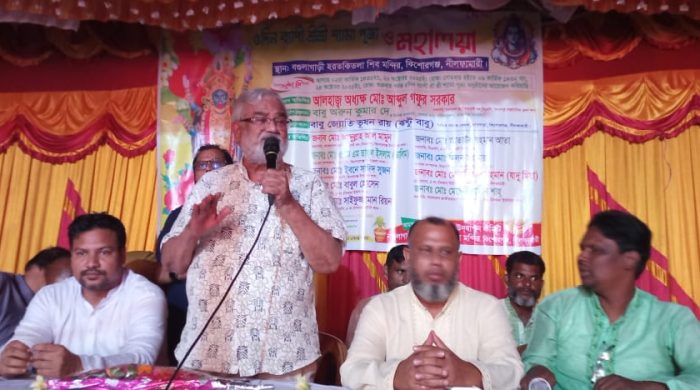 শারদীয় দুর্গোৎসবের পর নীলফামারীর কিশোরগঞ্জে উৎসবমুখর পরিবেশে পালিত হয়েছে শ্যামা পূজা ও দীপাবলি উৎসব। এই উপলক্ষে বুধবার রাতে উপজেলার চাঁদখানা ইউনিয়নে বিভিন্ন কালী পূজা মণ্ডপ পরিদর্শন ও পূজার্থীদের সাথে মতবিনিময় করেছে নীলফামারী-৪ আসনে বিএনপির প্রার্থী ও সৈয়দপুর রাজনৈতিক জেলার বিএনপির সভাপতি আলহাজ্ব আব্দুল গফুর সরকার।