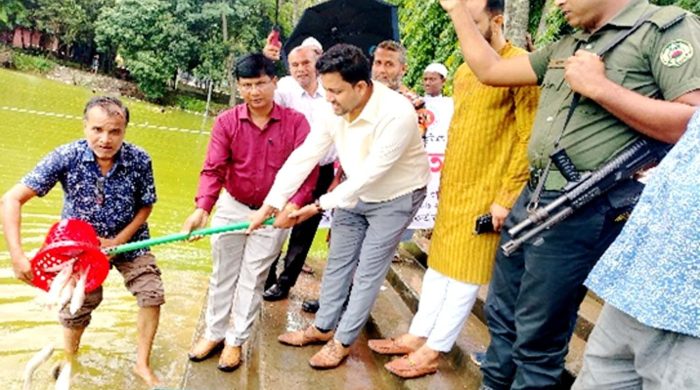 জাতীয় মৎস্য সপ্তাহ উপলক্ষে দুপচাঁচিয়া উপজেলা প্রশাসন ও মৎস্য দপ্তরের আয়োজনে এবং রাজস্ব বাজেটের আওতায় মাছের পোনা অবমুক্ত করা হয়েছে। গত ২০আগস্ট বুধবার সকালে উপজেলা পরিষদ পুকুরে এ মাছের পোনা অবমুক্ত করেন বগুড়া জেলা মৎস্য কর্মকর্তা কালীপদ রায়। এসময় উপজেলা নির্বাহী অফিসার শাহরুখ খান, উপজেলা কৃষি অফিসার সাজেদুল আলম, উপজেলা প্রাণী সম্পদ অফিসার ডাঃ আনোয়ার হাসান, উপজেলা প্রকৌশলী রুবেল হোসেন, উপজেলা সমাজসেবা কর্মকর্তা জাহিদ হাসান, সমবায় কর্মকর্তা আব্দুস সালাম, উপজেলা মৎস্য কর্মকর্তা মকছেদ আলী প্রামানিক, উপজেলা মৎস্যজীবী দলের সভাপতি মোখলেছার রহমান ভুট্টু প্রমুখ উপস্থিত ছিলেন। এদিন উপজেলা পরিষদের পুকুর সহ ৮টি জলাশয়ে ২’শ ৯৯ কেজি রুই জাতীয় মাছের পোনা অবমুক্ত করা হয়।