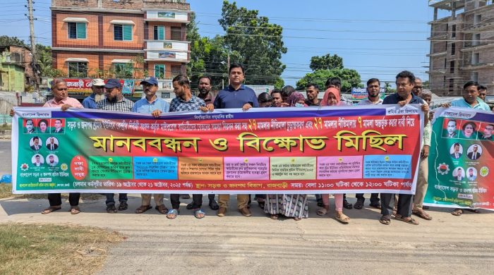 রাজবাড়ীতে সওজ কর্মচারীদের ৭ দফা দাবিতে বিক্ষোভ ও মানববন্ধন