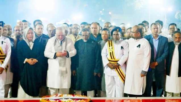 পুষ্পস্তবক অর্পণের পর, ভাষাশহীদদের স্মৃতির প্রতি গভীর শ্রদ্ধা জানিয়ে তারা কিছুক্ষণ নীরবে দাঁড়িয়ে থাকেন।