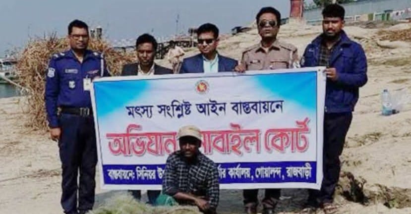 জানা যায়, গোয়ালন্দ উপজেলা সিনিয়র মৎস্য কর্মকর্তা মো. আনোয়ারুল ইসলাম এবং দৌলতদিয়া নৌ পুলিশ ফাঁড়ির ইনচার্জ ত্রিনাথ সাহা দ্বয়ের নেতৃত্বে সোমবার দুপুর আড়াইটার দিকে গোয়ালন্দ উপজেলাধীন কলাবাগান নামক স্থানে পদ্মা নদীতে পরিত্যক্ত অবস্থায় এক লক্ষ মিটার কারেন্ট জাল উদ্ধার এবং ৩০০ মিটার কারেন্ট জাল সহ ০১ জন জেলেকে আটক করা হয়। এসময় পরিত্যক্ত অবস্থায় ০৫ কেজি ইলিশ মাছ উদ্ধার করা হয়। পরবর্তীতে নিকটস্থ মাদ্রাসায় ওই মাছ বিতরন করা হয় এবং পরিত্যক্ত একলক্ষ মিটার কারেন্ট জাল আগুনে পুড়িয়ে ধ্বংস করা হয়।