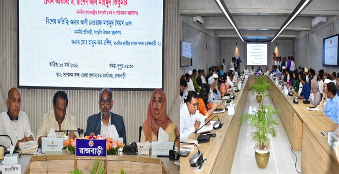 এতে প্রধান অতিথি হিসেবে উপস্থিত ছিলেন, প্রধানমন্ত্রীর অর্থ ও পরিকল্পনা উপদেষ্টা ড. রাশেদ আল মাহমুদ তিতুমীর। বিশেষ অতিথি হিসেবে উপস্থিত ছিলেন, সংস্কৃতি বিষয়ক মন্ত্রণালযের প্রতিমন্ত্রী আলী নেওয়াজ মাহমুদ খৈয়ম, রাজবাড়ী-২ আসনের এমপি মোঃ হারুন-অর-রশিদ। সভায় সভাপতিত্ব করেন, রাজবাড়ী জেলা প্রশাসক সুলতানা আক্তার। এ সময় বিভিন্ন দপ্তরের প্রকল্প গ্রহন, বাস্তবায়ন, সুবিধা, সমস্যা সমুহ তুলে ধরা হয়।