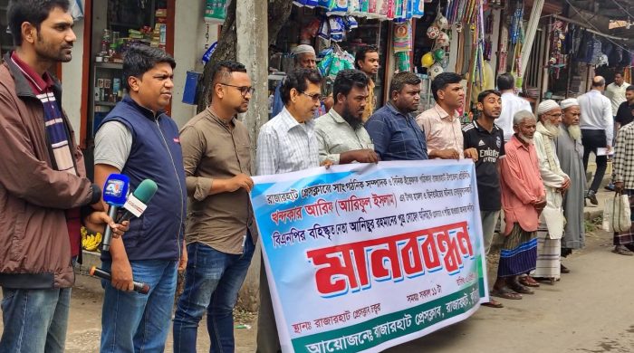 রাজারহাট প্রেসক্লাবের আয়োজনে অনুষ্ঠিত এই কর্মসূচিতে বক্তব্য রাখেন রাজারহাট প্রেসক্লাবের সভাপতি সরকার অরুণ যদু, সাধারণ সম্পাদক আসাদুজ্জামান আসাদ ও ভুক্তভোগী সাংবাদিক খন্দকার আরিফ। এছাড়া সুশীল সমাজের প্রতিনিধি এবং সাধারণ জনতা সংহতি প্রকাশ করে অংশ নেন।