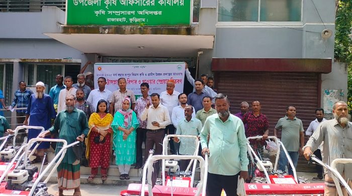 কুড়িগ্রামের রাজারহাট উপজেলায় রংপুর বিভাগীয় কৃষি ও গ্রামীণ উন্নয়ন প্রকল্পের আওতায় কৃষকদের মাঝে ধান কাটার মেশিন (রিপার), মাসকালাই বীজ, সার ও পেঁয়াজ সংরক্ষণের আধুনিক মেশিন বিতরণ করা হয়েছে।