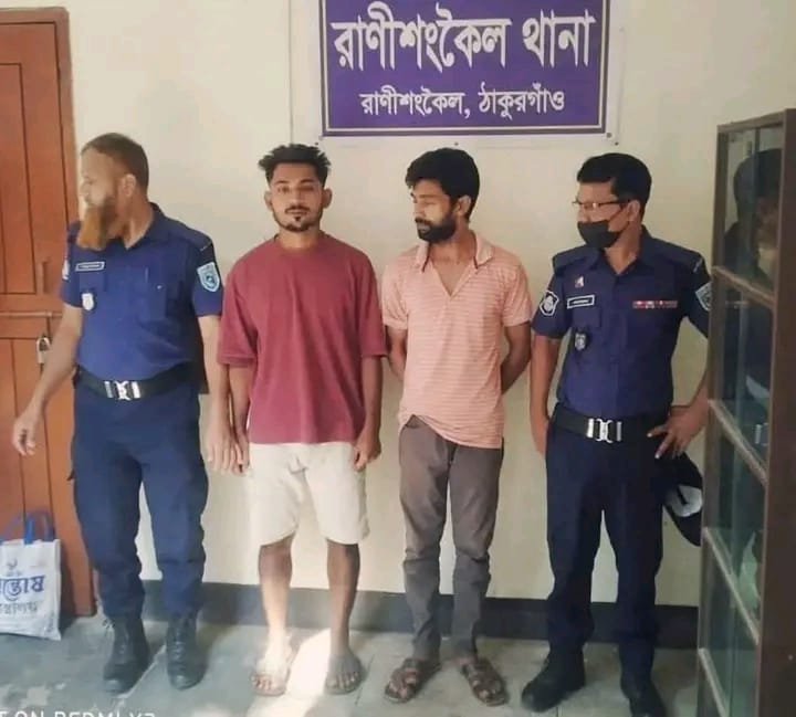 আটককৃতরা হলেন—রাণীশংকৈল উপজেলার হাটগাঁও গ্রামের আমজাদ আলীর ছেলে জাহাঙ্গীর আলম (৩২) এবং মহলবাড়ি গ্রামের মৃত রফিকুল ইসলামের ছেলে নাজিমুল ইসলাম (২৩)।