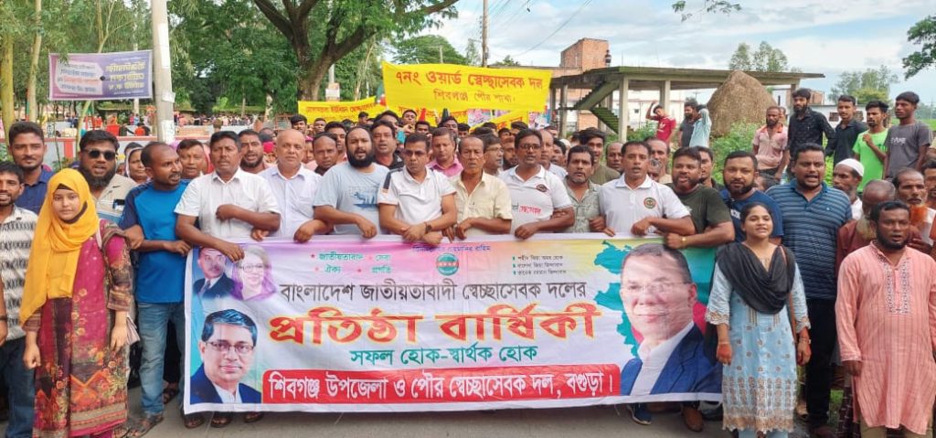 বাংলাদেশ জাতীয়তাবাদী স্বেচ্ছাসেবক দলের ৪৫ তম প্রতিষ্ঠাবার্ষিকী উপলক্ষে কেন্দ্রীয় কর্মসূচির অংশ হিসেবে বগুড়ার শিবগঞ্জ উপজেলা ও পৌর স্বেচ্ছাসেবক দলের উদ্যোগে র্যালি ও বৃক্ষরোপণ কর্মসূচি অনুষ্ঠিত হয়েছে।