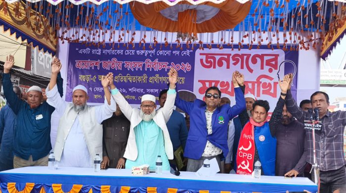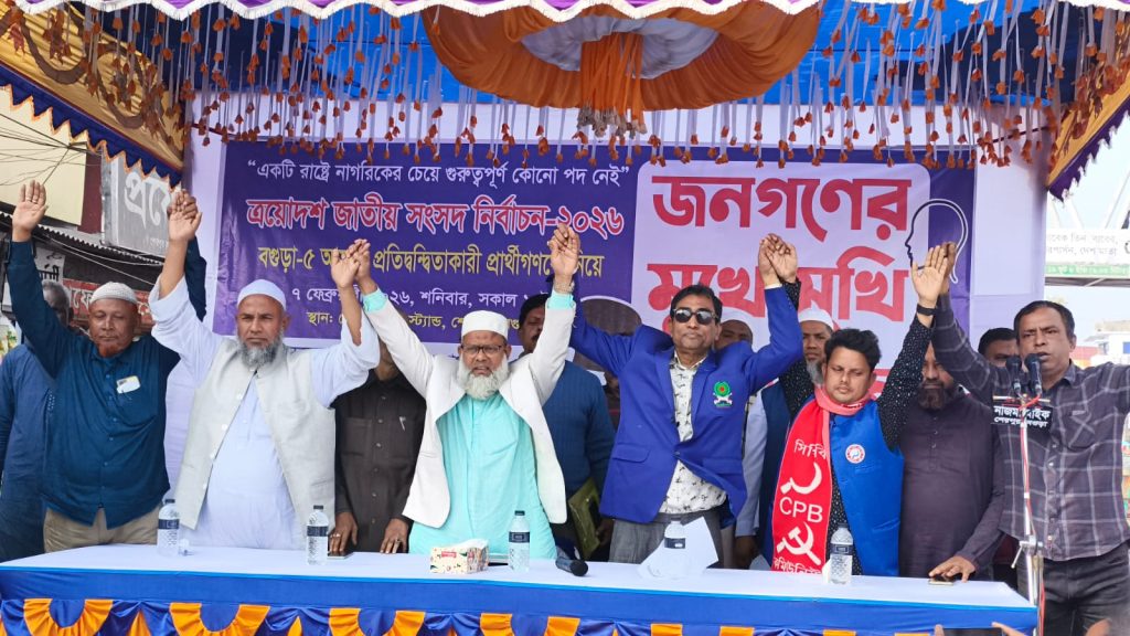 বগুড়ার শেরপুরে সুশাসন প্রতিষ্ঠা এবং একটি সুস্থ রাজনৈতিক সংস্কৃতি গড়ার লক্ষ্যে সংসদ সদস্য পদে প্রতিদ্বন্দ্বী প্রার্থীরা জনগণের সামনে উপস্থিত হয়ে আনুষ্ঠানিক অঙ্গীকার করেছেন। শনিবার (৭ ফেব্রুয়ারি) বেলা ২টায় শেরপুর বাসস্ট্যান্ড এলাকায় সুশাসনের জন্য নাগরিক (সুজন) এর আয়োজনে এই জনতার মুখোমুখি অনুষ্ঠানটি অনুষ্ঠিত হয়।