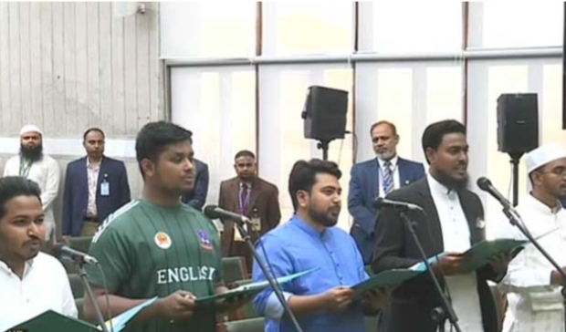 সংসদ ভবনের গাম্ভীর্য আর প্রথাগত স্যুট-পাঞ্জাবির ভিড়ে আজ নজর কাড়লেন কুমিল্লা-৪ আসনের নবনির্বাচিত এমপি হাসনাত আবদুল্লাহ। দুপুর ১টা ৩০ মিনিটে প্রধান নির্বাচন কমিশনারের কাছে টি-শার্ট ও জিন্স পরেই সংসদ সদস্য হিসেবে শপথ নিলেন তিনি।