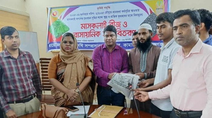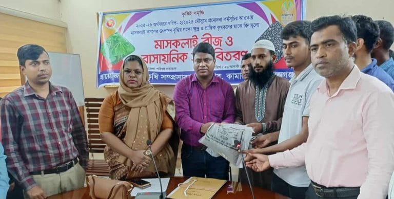 কামারখন্দ উপজেলায় ১০০ জন ক্ষুদ্র ও প্রান্তিক কৃষকের মধ্যে মাসকলাই বীজ ও রাসায়নিক সার বিনামূল্যে বিতরণ করা হয়েছে।
