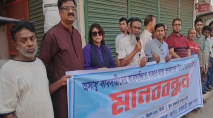ভোজ্যতেল উধাও এবং কৃত্রিম সংকট সৃষ্টির প্রতিবাদে রাজবাড়ীতে মানববন্ধন কর্মসূচি অনুষ্ঠিত হয়েছে। বুধবার (০৮ এপ্রিল) বিকেলে রাজবাড়ী প্রেসক্লাবের সামনে কনজুমারস এসোসিয়েশন অব বাংলাদেশ (ক্যাব) রাজবাড়ী জেলা শাখার উদ্যোগে এ কর্মসূচি